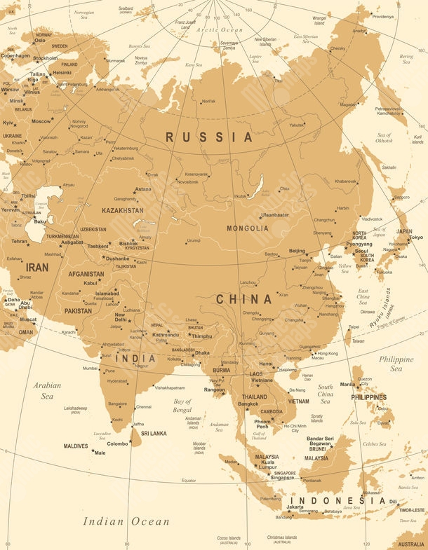 Magnetische Landkarte Asien , vintage, beige