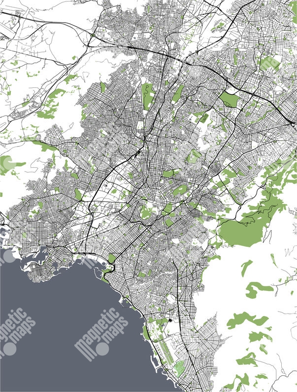 Magnetische Landkarte Athen, detaillierte, schwarze