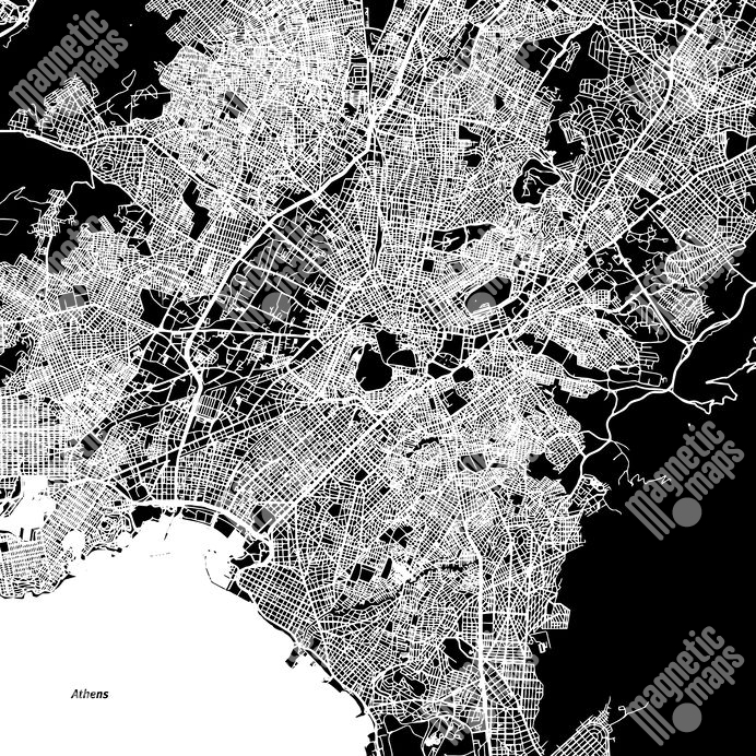 Magnetische Landkarte Athen, illustrierte, schwarz-weiße