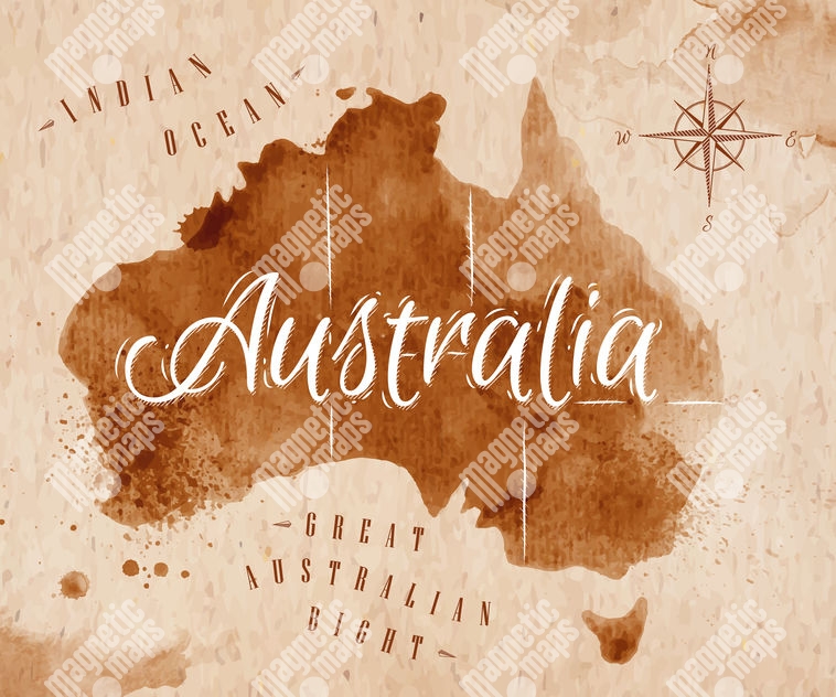 Magnetische Landkarte Australien, Aquarell, braune