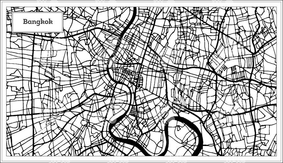 Magnetische Landkarte Bangkok, illustrierte, schwarz-weiße
