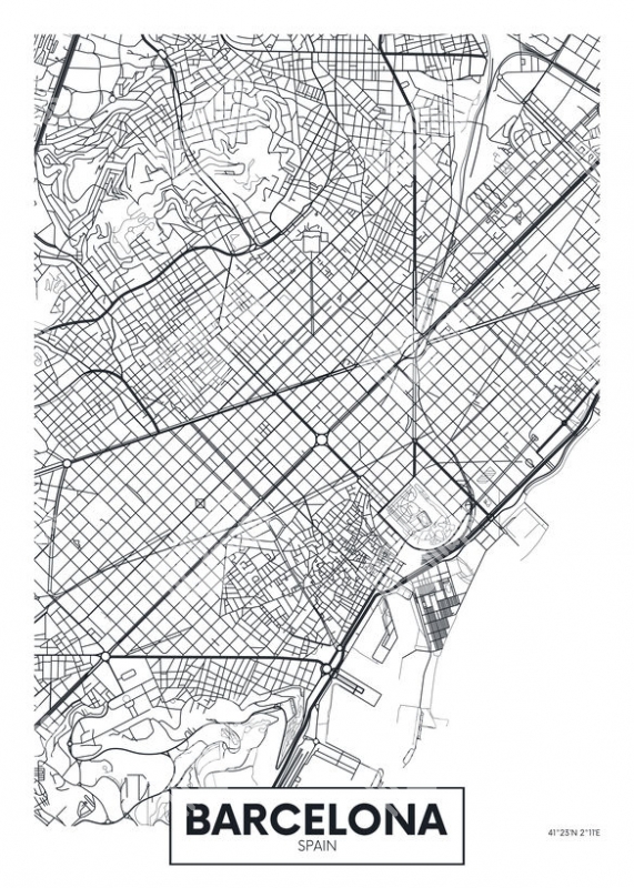 Magnetische Landkarte Barcelona, illustrierte, schwarz-weiße