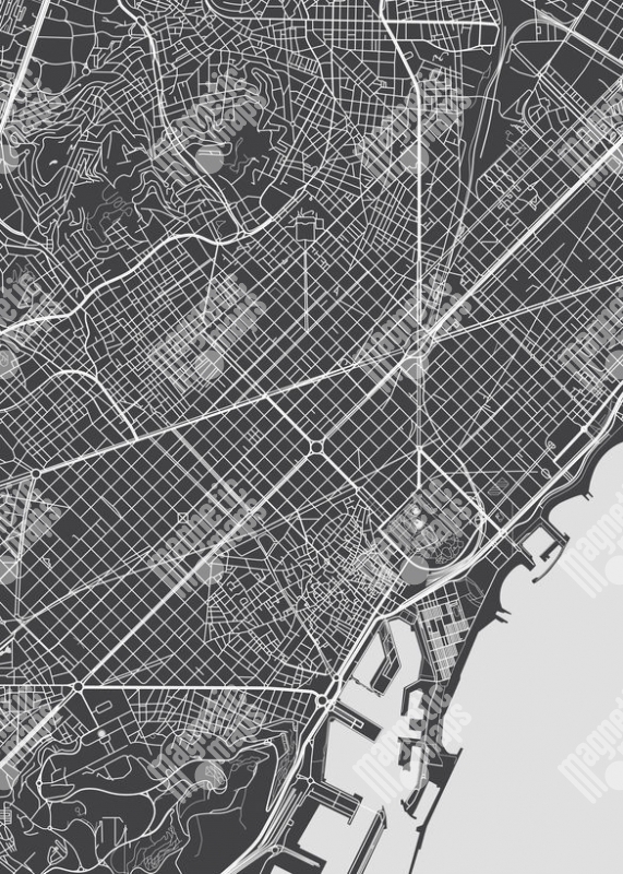 Magnetische Landkarte Barcelona, illustrierte, schwarz-weiße