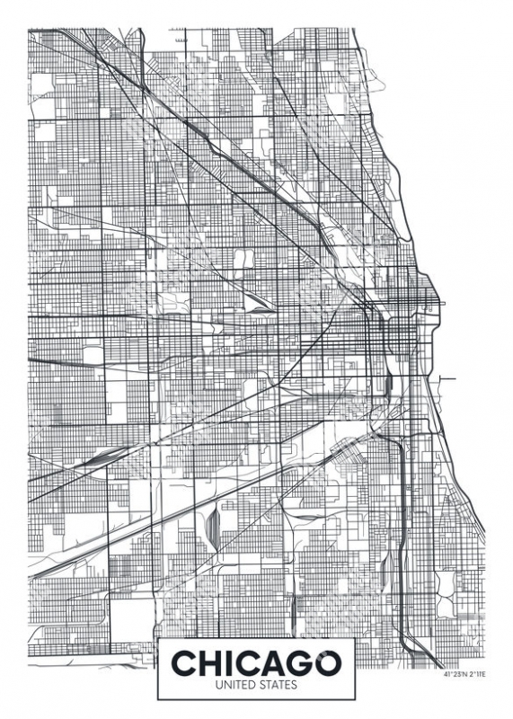 Magnetische Landkarte Chicago, illustrierte, schwarz-weiße