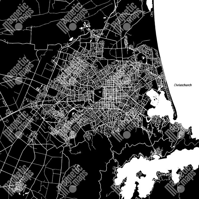Magnetische Landkarte Christchurch, illustrierte, schwarz-weiße