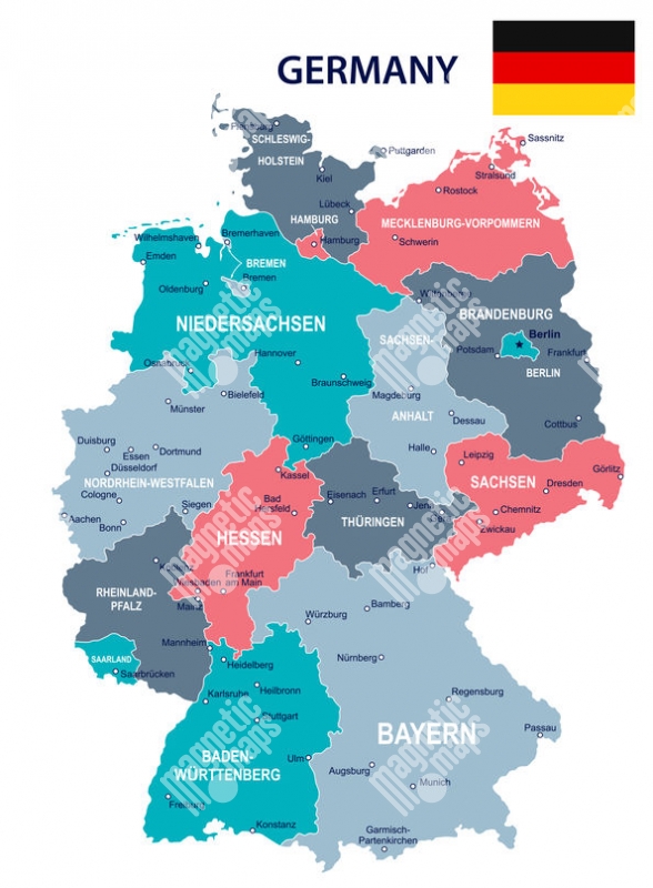 Magnetische Landkarte Deutschland, detaillierte, bunte