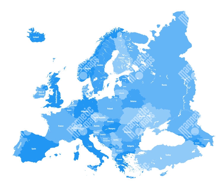 Magnetische Landkarte Europa, detaillierte, blaue