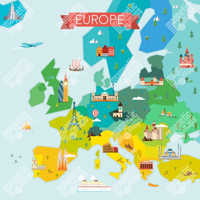 Magnetische Landkarte Europa, illustrierte, bunte