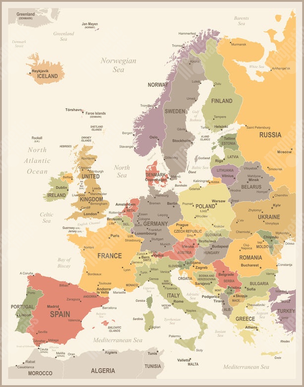 Magnetische Landkarte Europa, vintage, bunte