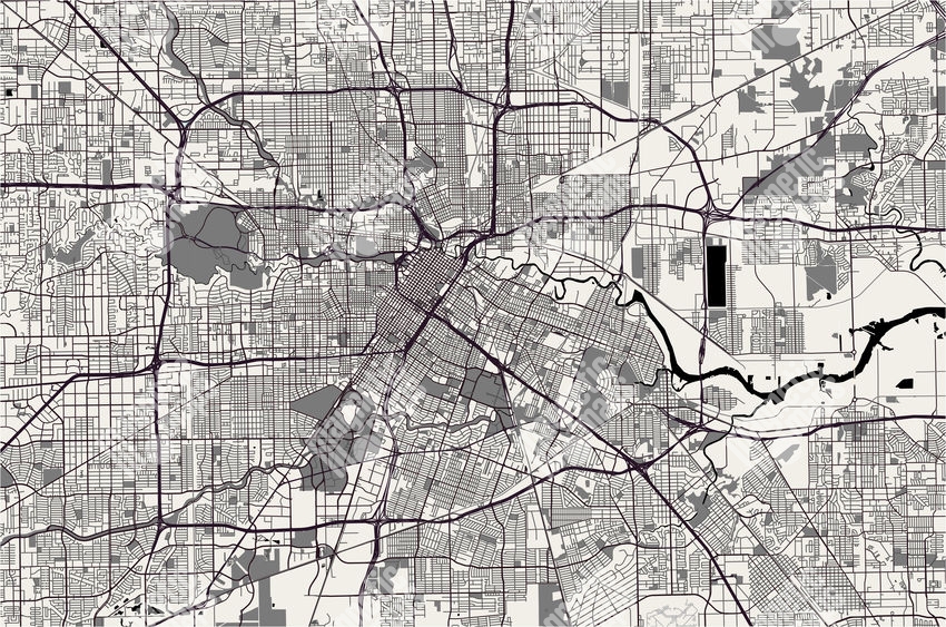 Magnetische Landkarte Houston, illustrierte, schwarz-weiße