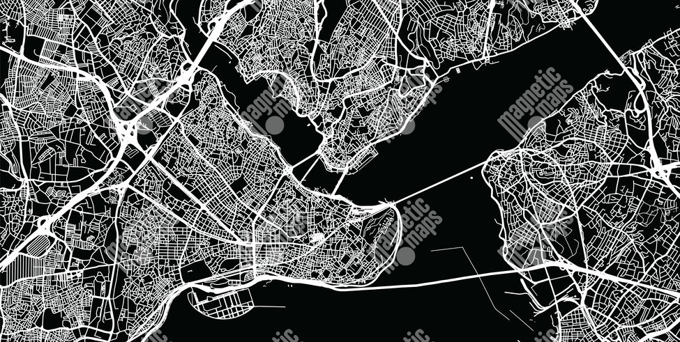 Magnetische Landkarte Istanbul, illustrierte, schwarze