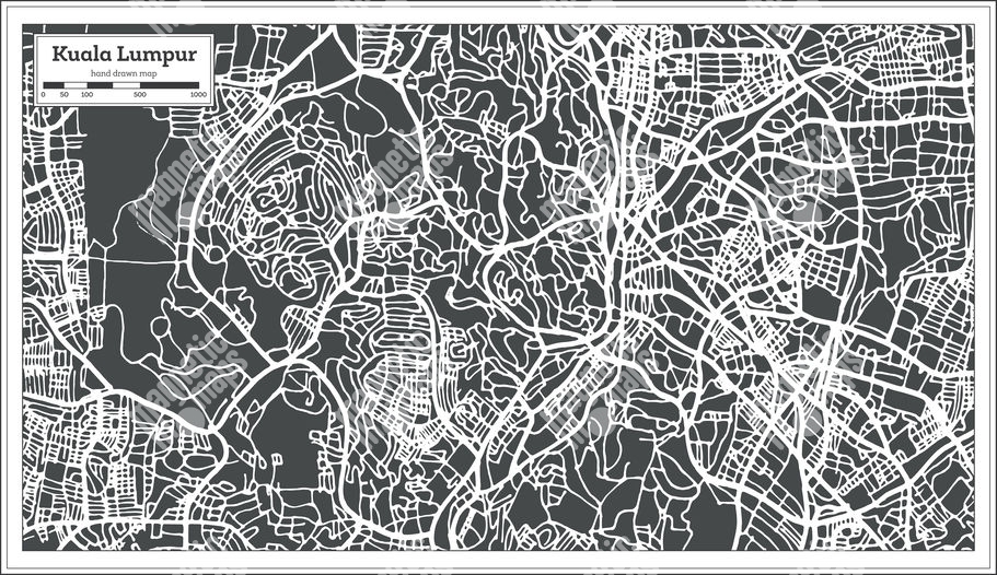 Magnetische Landkarte Kuala Lumpur, illustrierte, schwarz-weiße