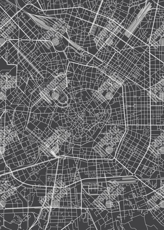 Magnetische Landkarte Mailand, illustrierte, schwarz-weiße
