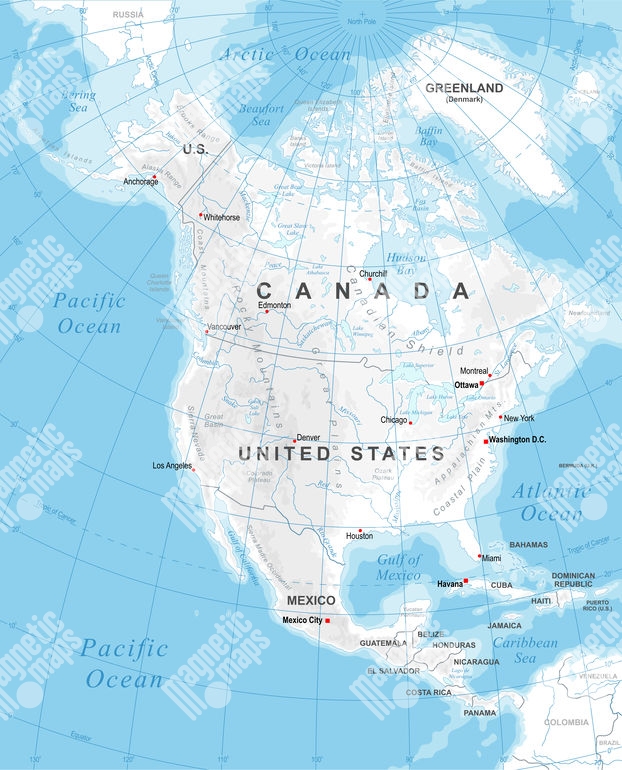 Magnetische Landkarte Nordamerika, geografische, detaillierte