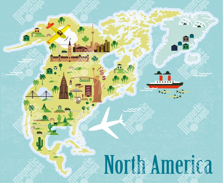 Magnetische Landkarte Nordamerika, Gezeichnete, bunte