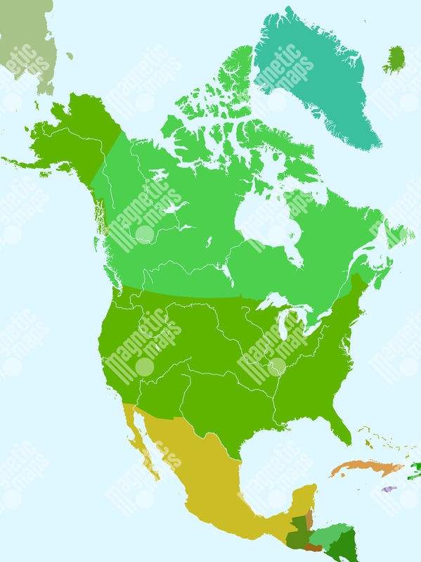 Magnetische Landkarte Nordamerika, illustrierte, bunte