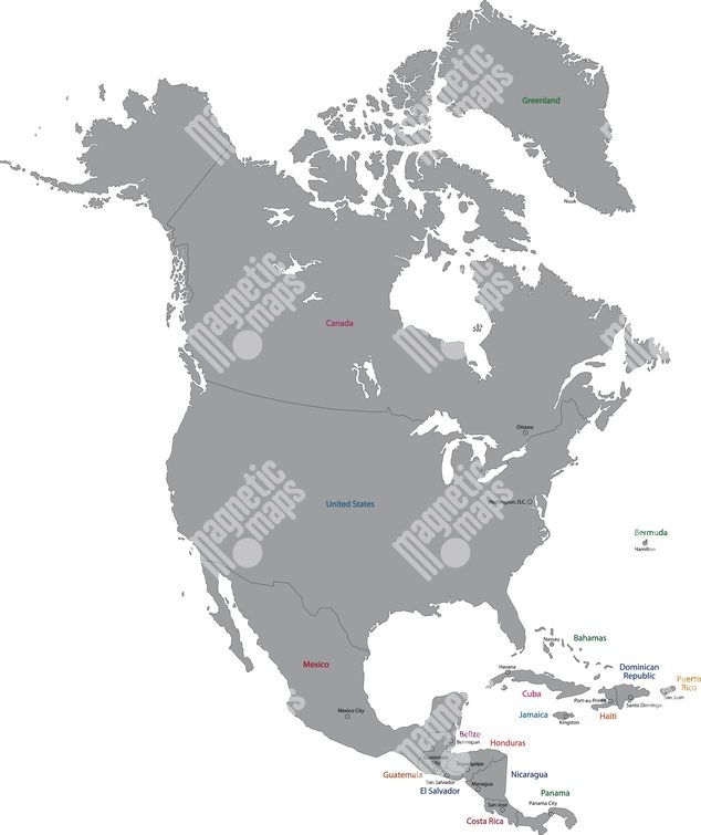 Magnetische Landkarte Nordamerika, illustrierte, graue