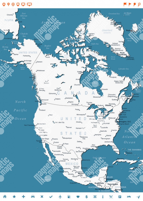 Magnetische Landkarte Nordamerika, illustrierte, weiß-blaue