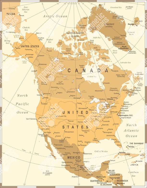 Magnetische Landkarte Nordamerika, vintage, beige