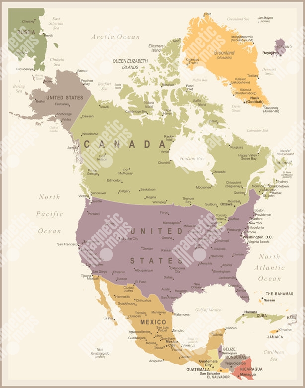 Magnetische Landkarte Nordamerika, vintage, bunte
