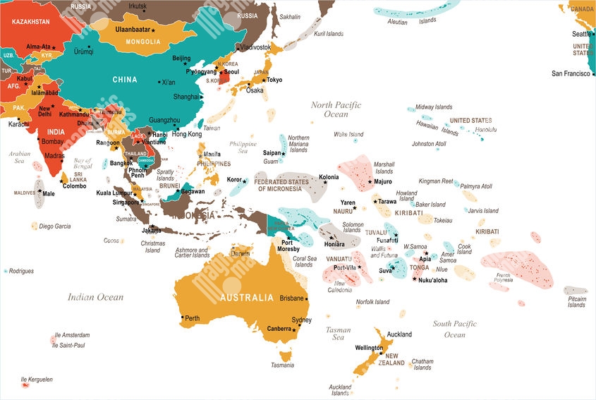Magnetische Landkarte Ostasien und Ozeanien, illustrierte, bunte