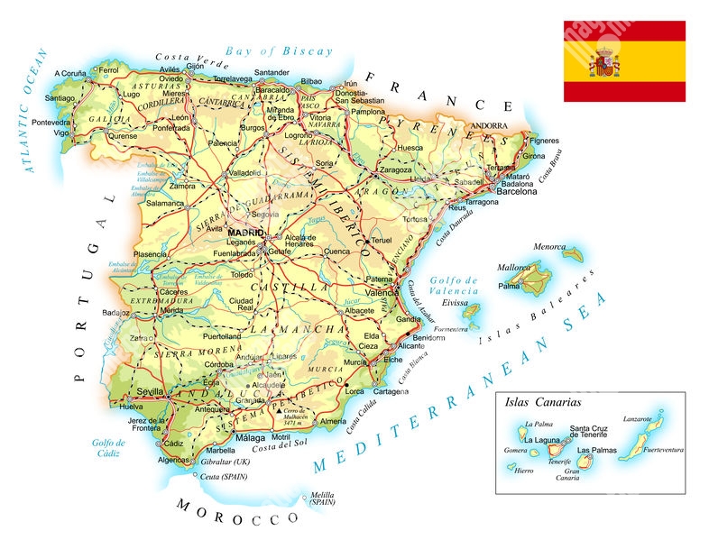 Magnetische Landkarte Spanien, geografische, bunte