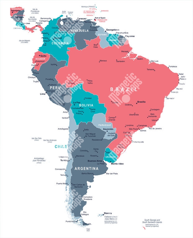 Magnetische Landkarte Südamerika, illustrierte, bunte