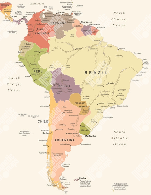 Magnetische Landkarte Südamerika, illustrierte, bunte