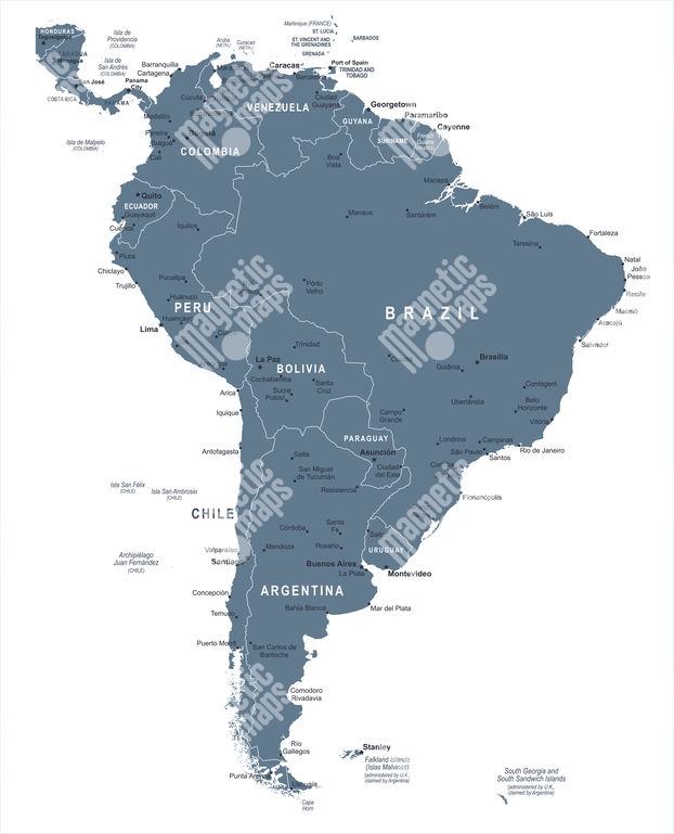 Magnetische Landkarte Südamerika, illustrierte, weiß-blaue