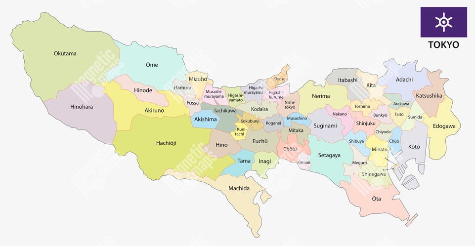 Magnetische Landkarte Tokyo, administrative, bunte