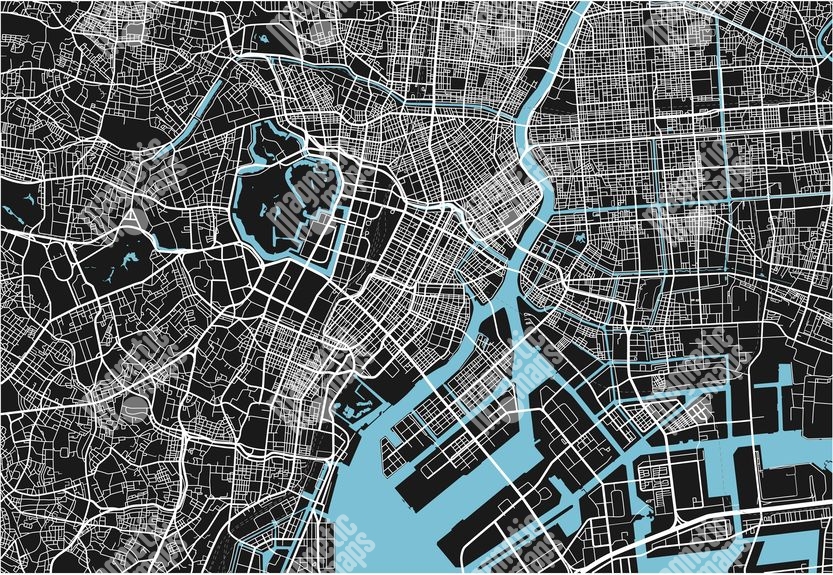 Magnetische Landkarte Tokyo, illustrierte, schwarz-weiße