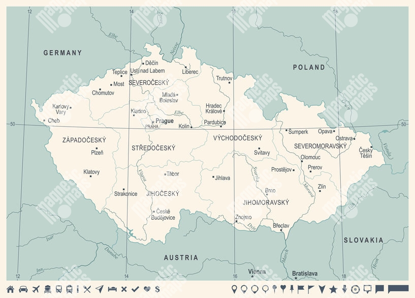 Magnetische Landkarte Tschechische Republik, detaillierte, weiß-blaue
