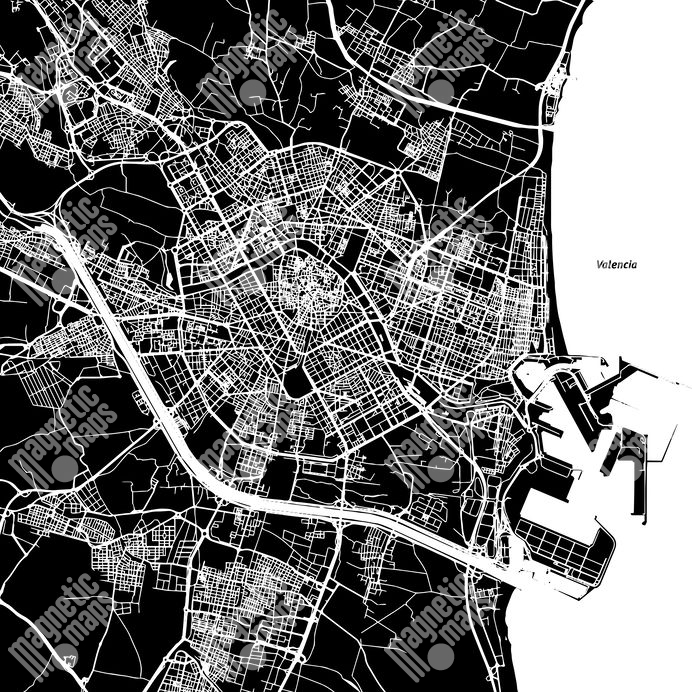 Magnetische Landkarte Valencia, illustrierte, schwarz-weiße
