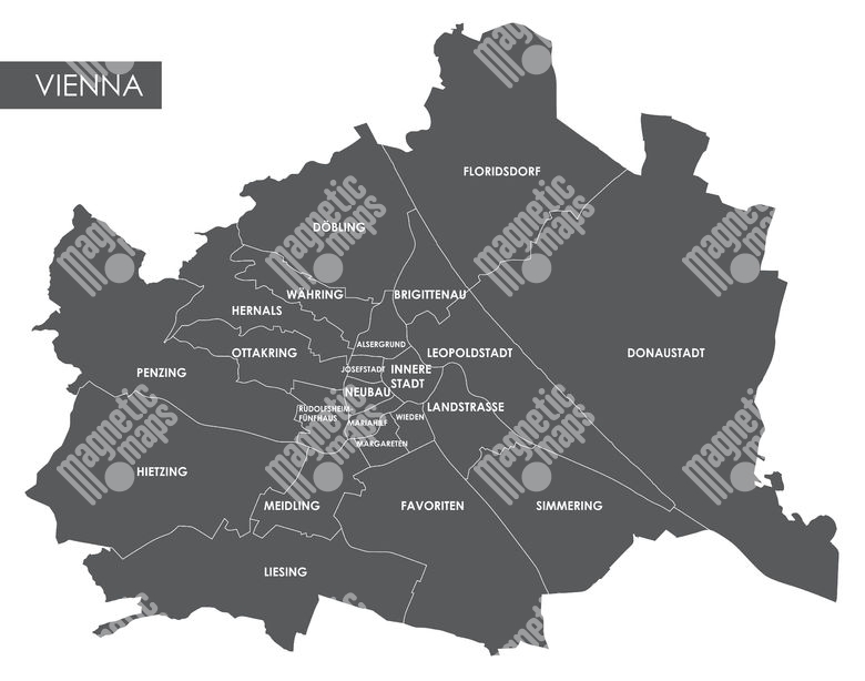 Magnetische Landkarte Wien, illustrierte, graue