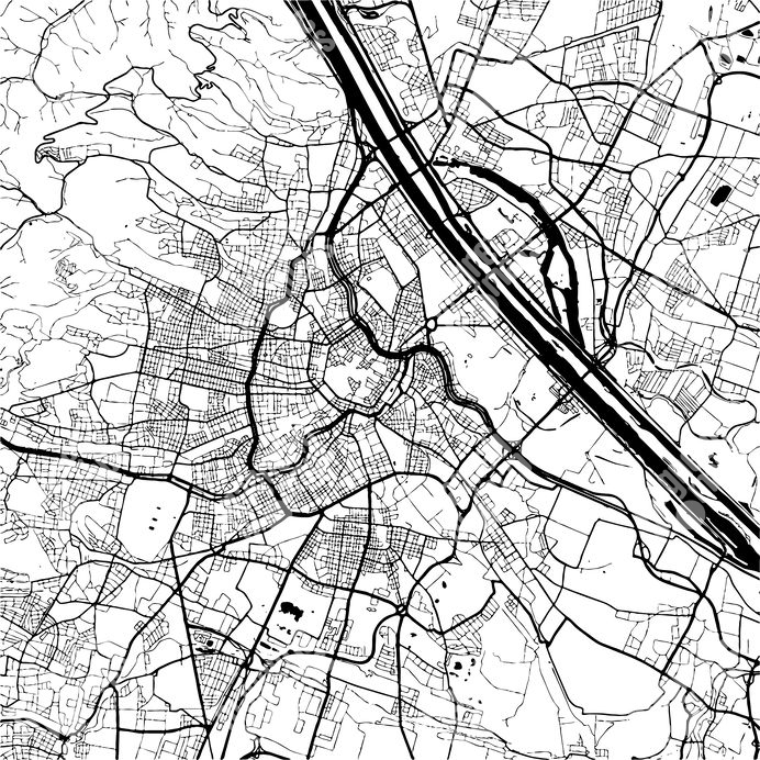 Magnetische Landkarte Wien, illustrierte, schwarz-weiße